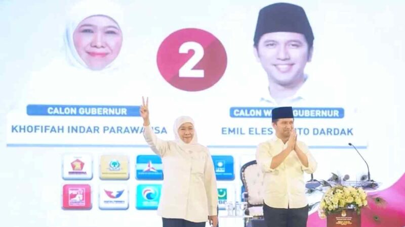 BONDOWOSO, JATIM – Pasangan calon Gubernur dan Wakil Gubernur Jawa Timur nomor urut 02, Khofifah Indar Parawansa – Emil Elestianto Dardak, meraih kemenangan besar di Kabupaten Bondowoso pada Pilkada Jatim 2024. Berdasarkan hasil penghitungan riil dari tim pemenangan, pasangan petahana ini berhasil mengumpulkan 69 persen suara.