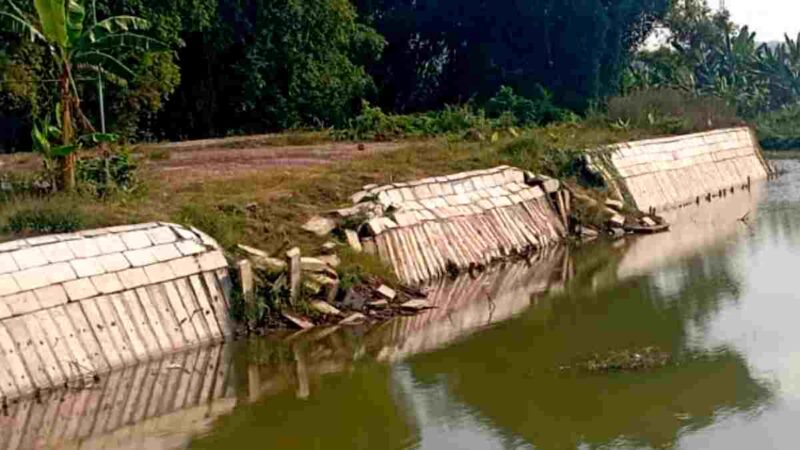 Proyek ini dilaksanakan oleh CV Rafa Jaya, dengan lingkup pekerjaan meliputi pemasangan L-Shape Lining sepanjang 86 meter (215 unit), 322 unit lining tambahan, 107 penutup lining, serta normalisasi sungai sepanjang 100 meter. Bangunan yang ditujukan sebagai sarana penampungan air untuk mendukung pertanian ini kini justru menjadi simbol kegagalan konstruksi.