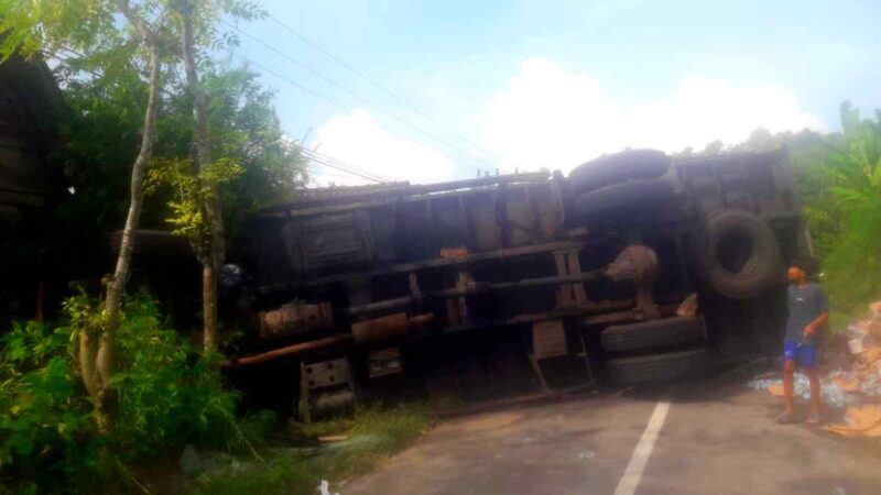 Namun, saat melintasi kawasan Sigro yang dikenal memiliki kontur jalan menurun dan berkelok, diduga sistem pengereman kendaraan tidak berfungsi alias rem blong. Akibatnya, truk meluncur bebas tanpa kendali hingga akhirnya terguling ke sisi kanan jalan.